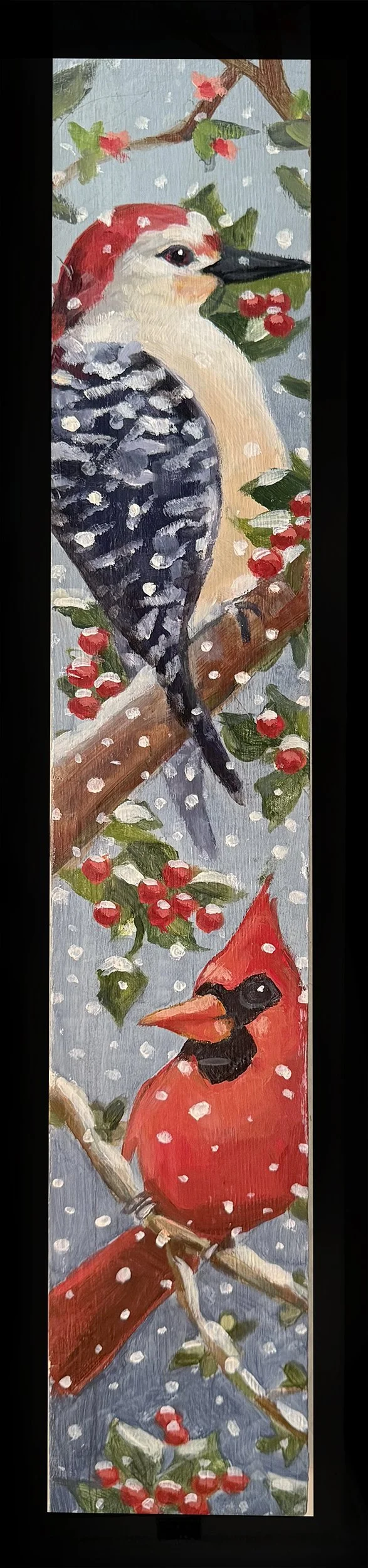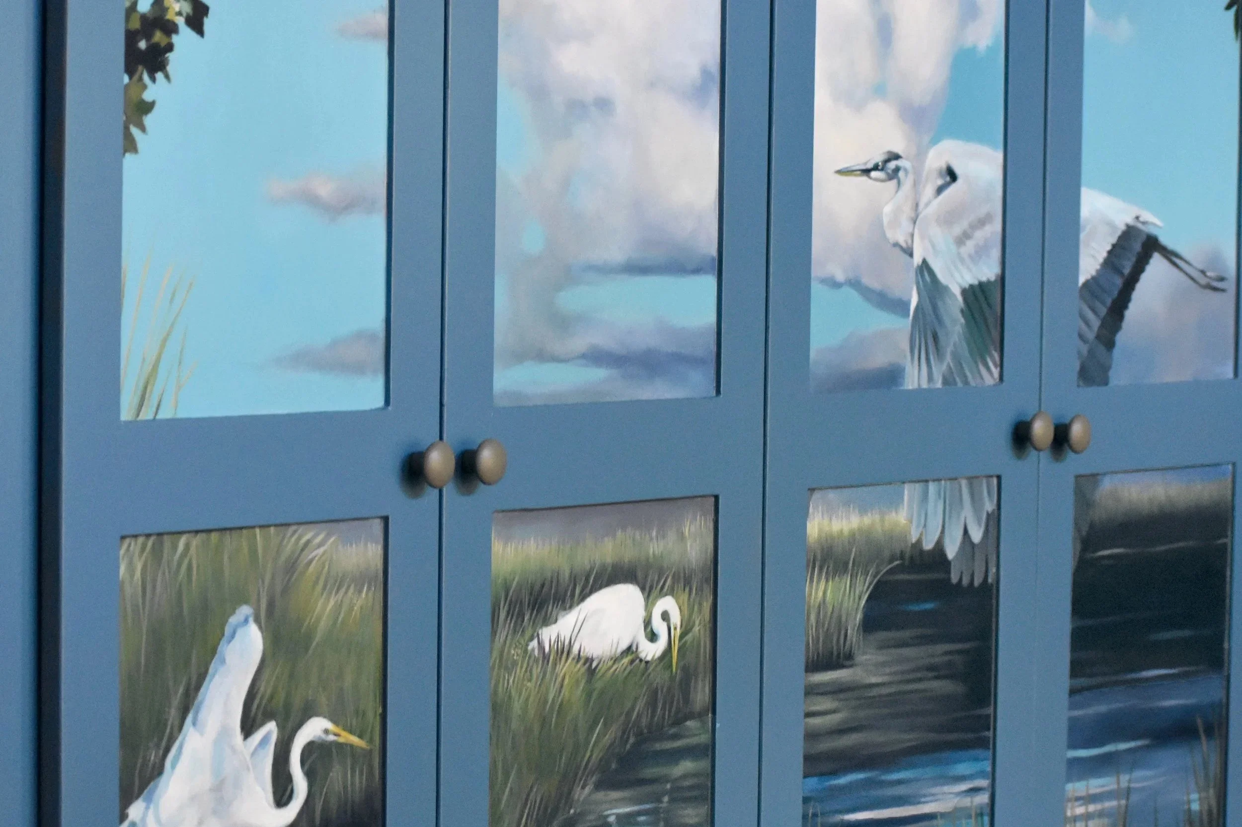 I love bringing the beauty of wildlife into unexpected places, transforming everyday furniture and household items into works of art. Each mural is hand-painted with careful attention to detail, whether it’s a sweeping scene of birds against a familiar scene/locale or a delicate bird perched atop a measuring stick for a child’s bedroom. By blending fine art with functional objects, I create pieces that are both useful and can be kept or passed down - turning your home into a gallery where nature and imagination live side by side. Contact me if you are interested in commissioning a painting on a unique surface, and I’d be glad to discuss the details of what’s possible.